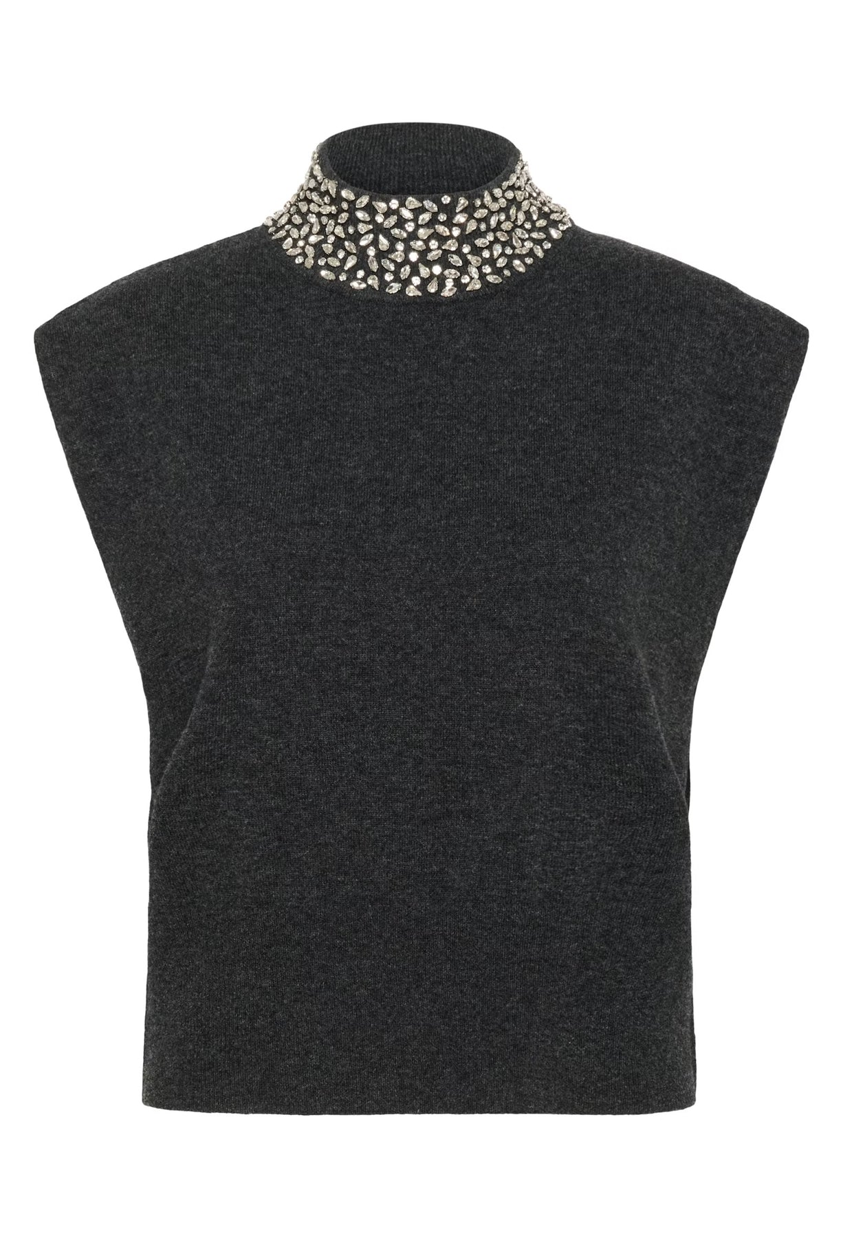 Ull vest fra Gestuz med lekre krystaller i halsen. Perfekt som en topp sammen med et skjørt, inni en blazer eller over en skjorte! 100% ull