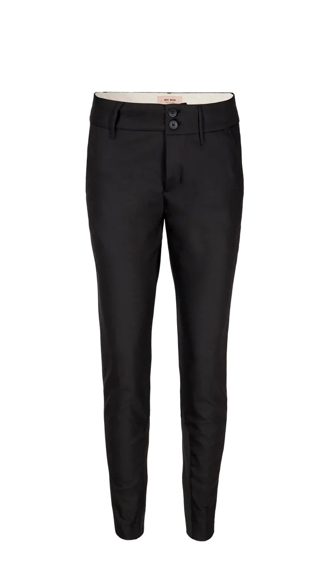 Blake Night Pant fra MosMosh er en dressbukse som sitter som et skudd. Du kan kle deg i denne til fest, men alikevel oppleve den like behagelig som en joggebukse. Buksen er høy eller lav på livet, alt etter hvordan du ønsker å bruke den. Den er designet i en rynkefri finish. Strikk innerst på leggen for ekstra komfort, samt røffe den opp litt. Kan styles til en Blazer i samme serie, men er også kul med skjorte og vest.