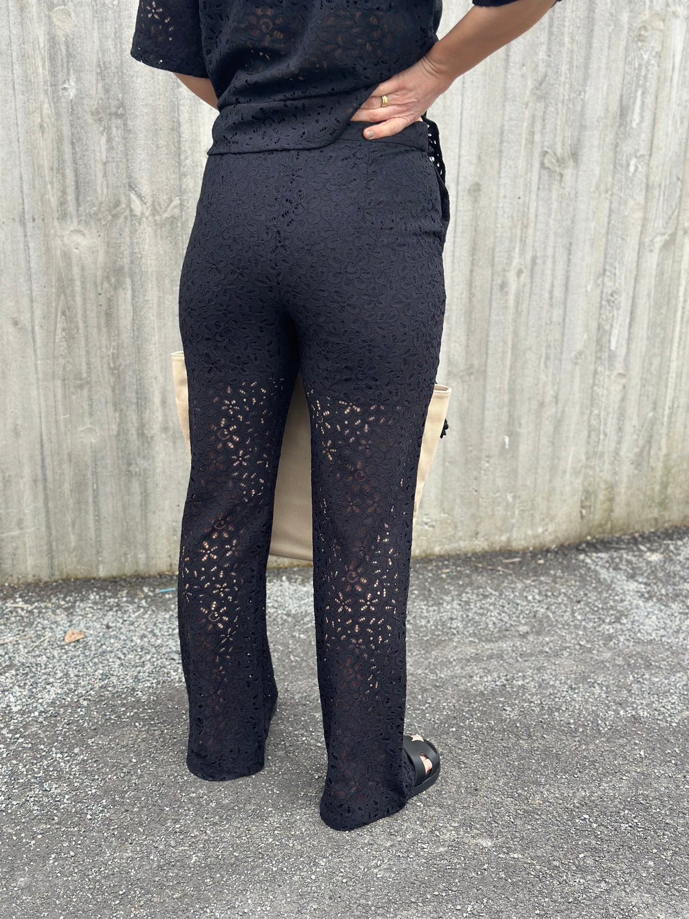 Karola HW Flared Lace Pant, Black