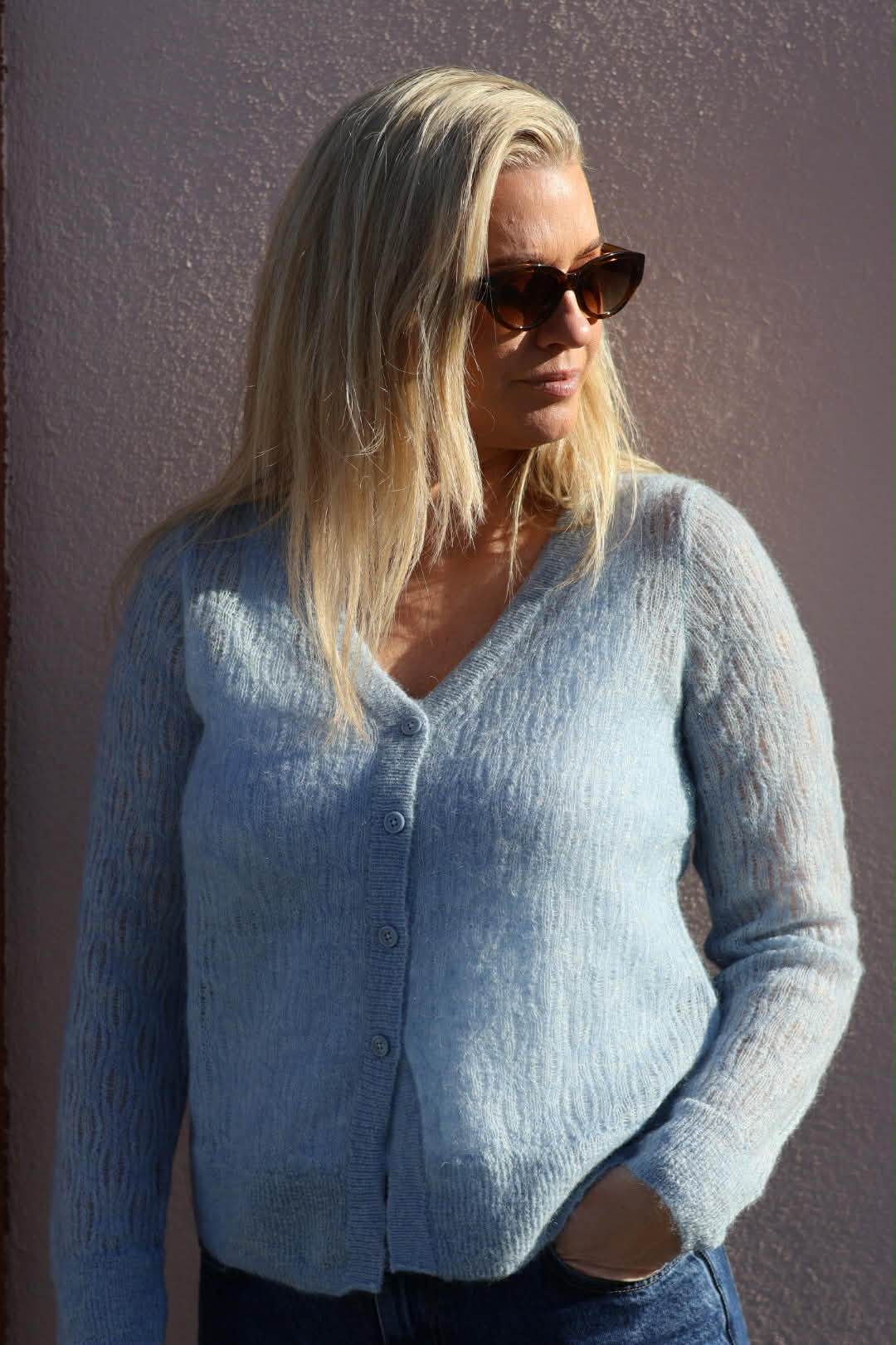 Tynn lun og delikat strikkejakke fra Selected i prima kvalitet