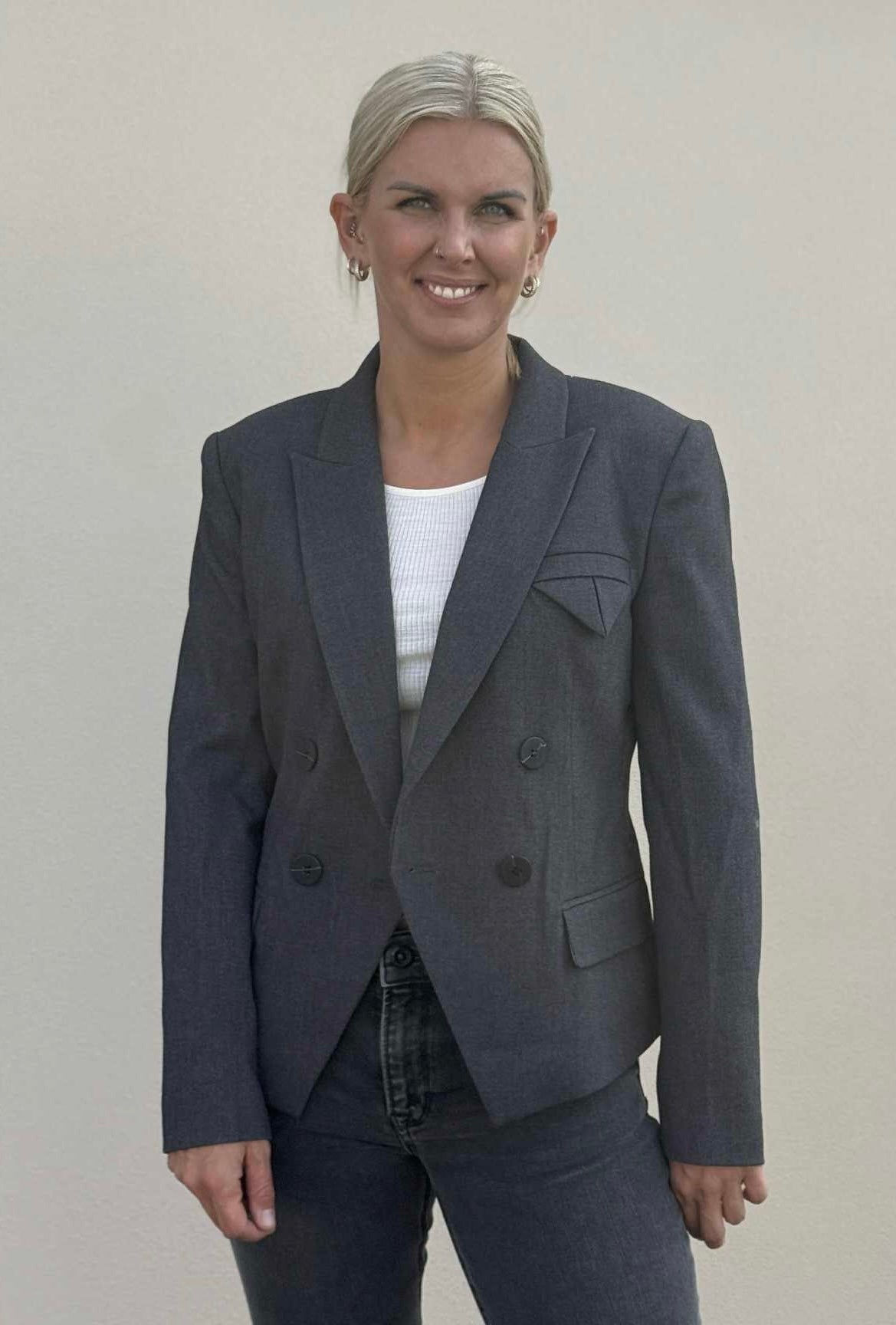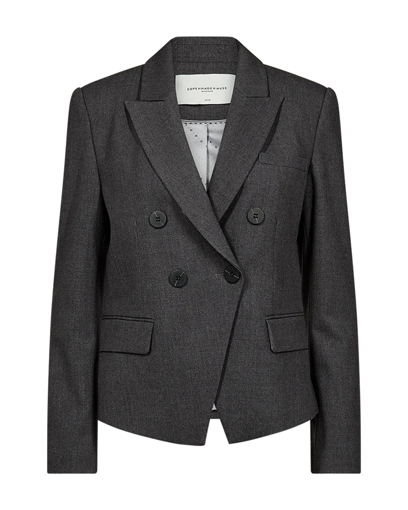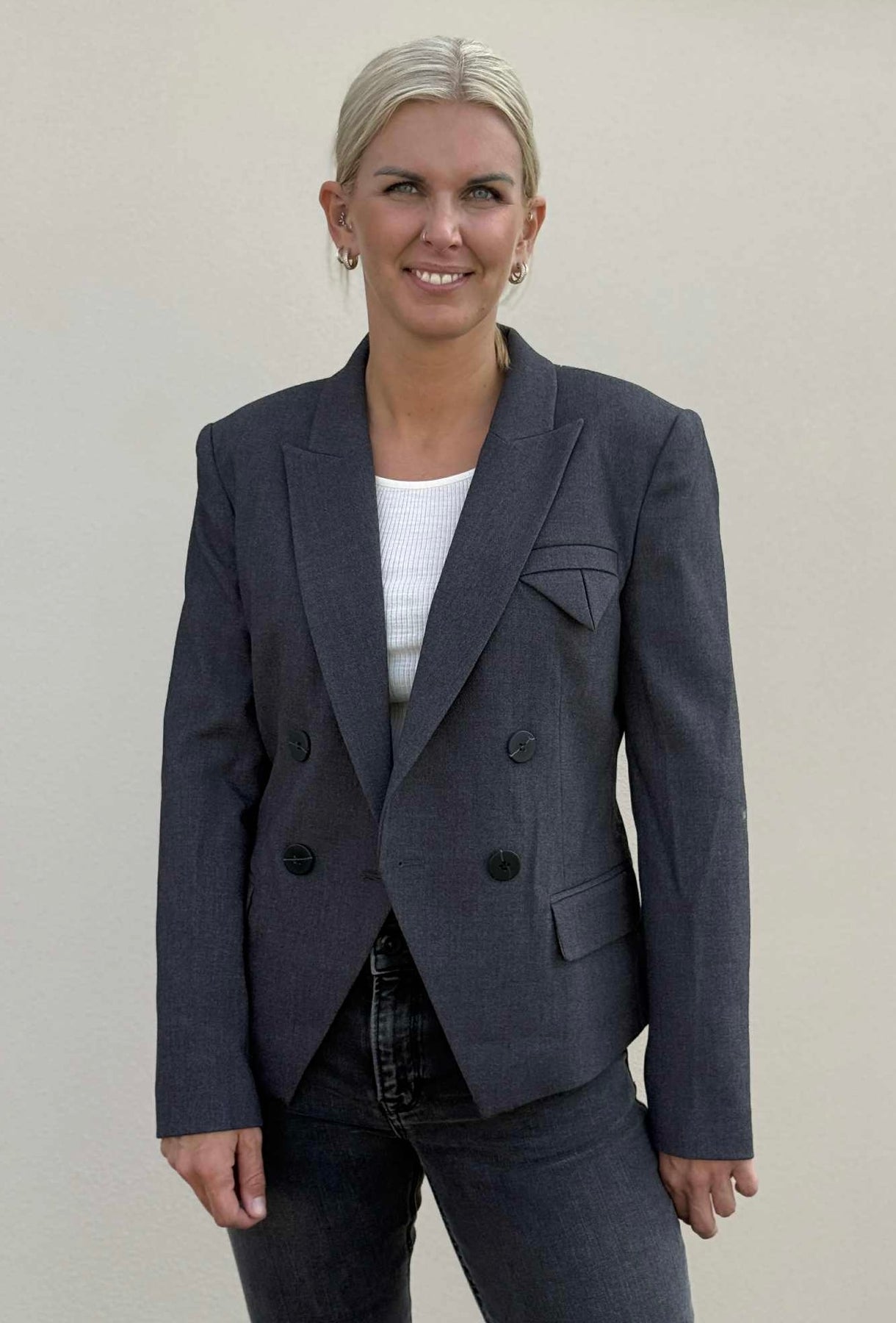 Trendy kort dobbelspent blazer er et nytt tilskudd i den fantastiske Tailor-serien til Copenhagen Muse, og vi elsker den! Style den over t-shirt til jeans og skjørt, eller som en hel dress med buksen til.