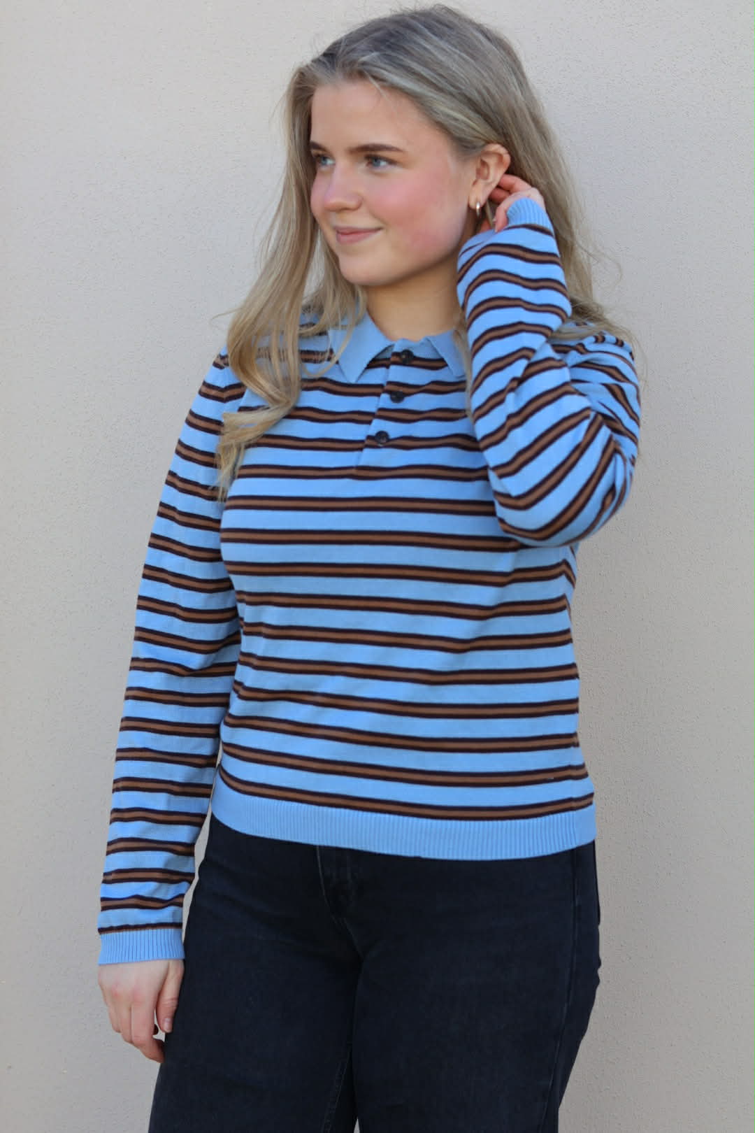 Striped Polo Genser har et heldekkende