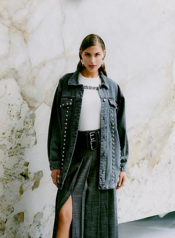 Kul oversized jeansjakke fra Copenhagen Muse med rå detaljer.