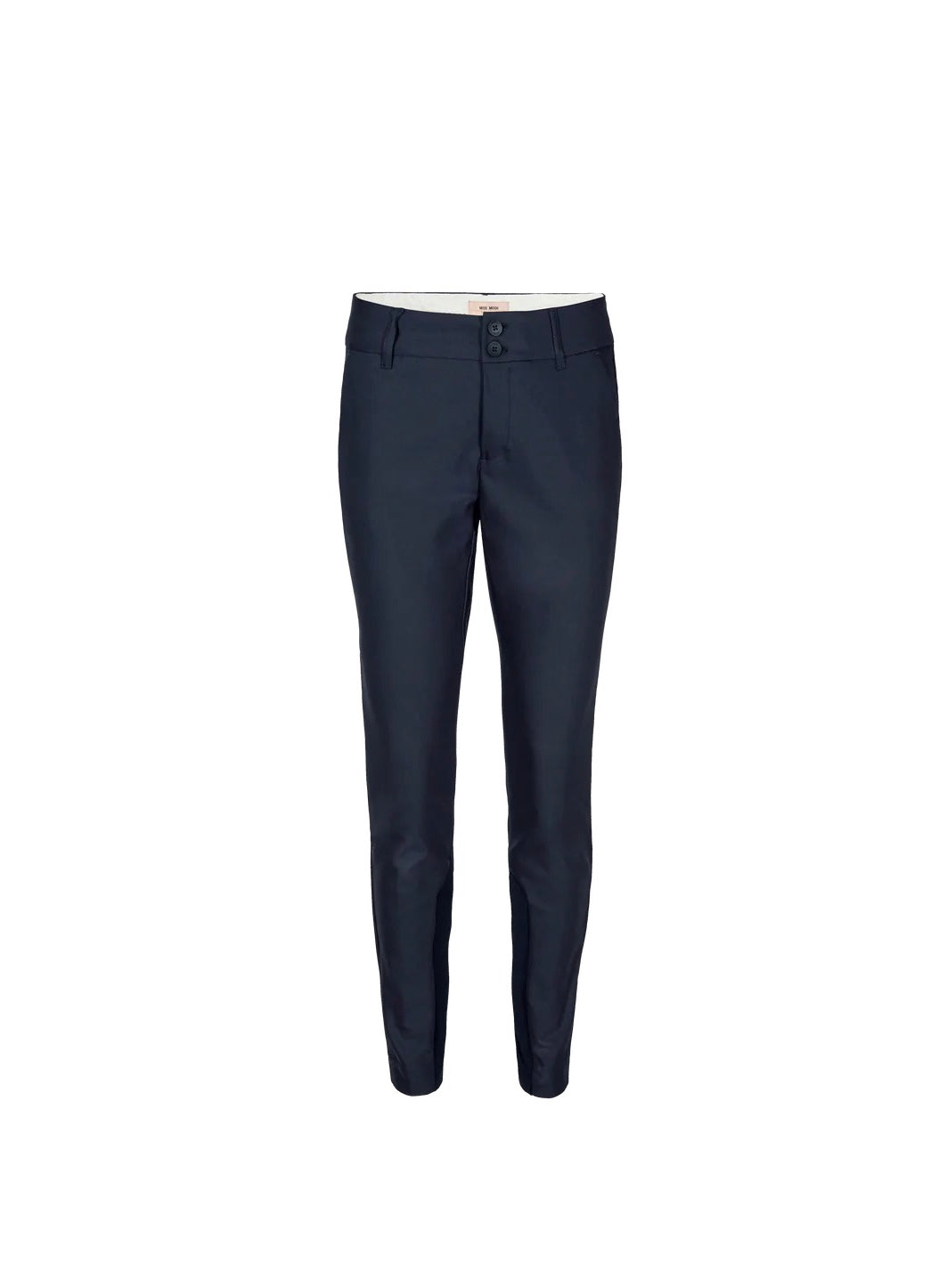 Blake Night Pant fra MosMosh er en dressbukse som sitter som et skudd. Du kan kle deg i denne til fest, men alikevel oppleve den behagelig som en joggebukse. Buksen er høy eller lav på livet, alt etter hvordan du ønsker å bruke den og designet i en rynkefri finish. Strikk innerst på leggen for ekstra komfort, samt røffe den opp litt. Kan styles til en Blazer som sett, men også kul med skjorte og vest. Mulighetene er mange! 50% Bomull, 46% resirkulert polyamid, 4% elastan