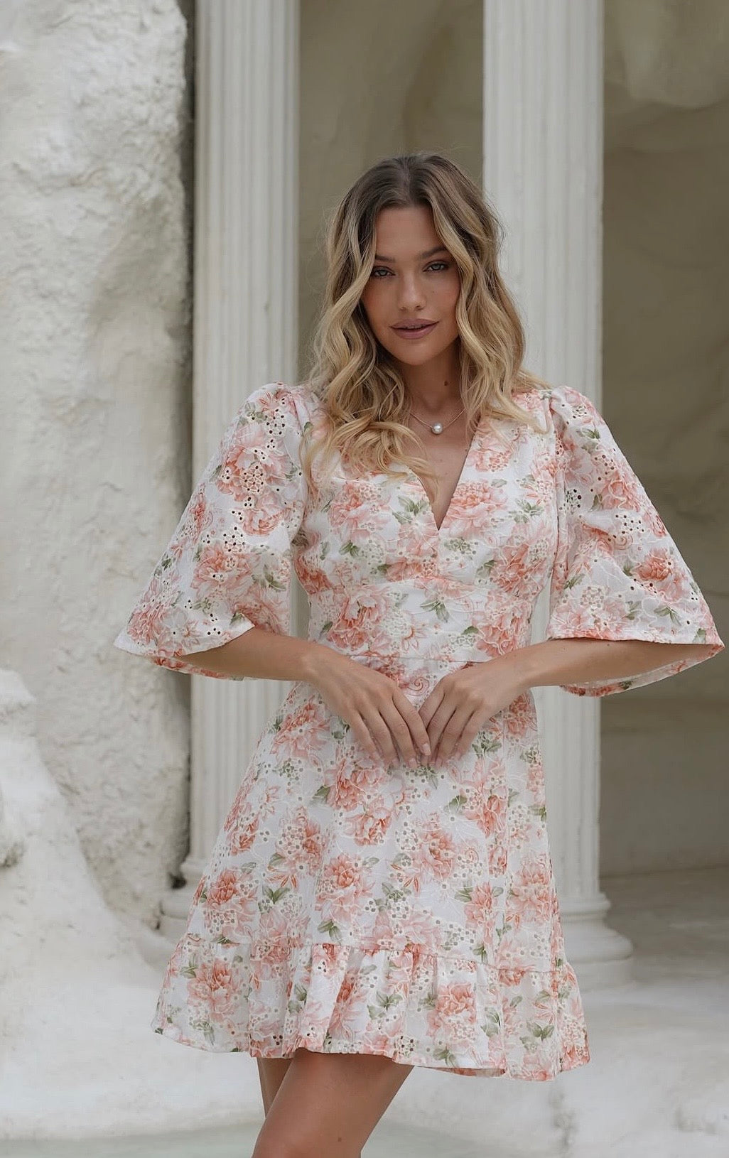 blomstertrykk med en flatterende V-hals