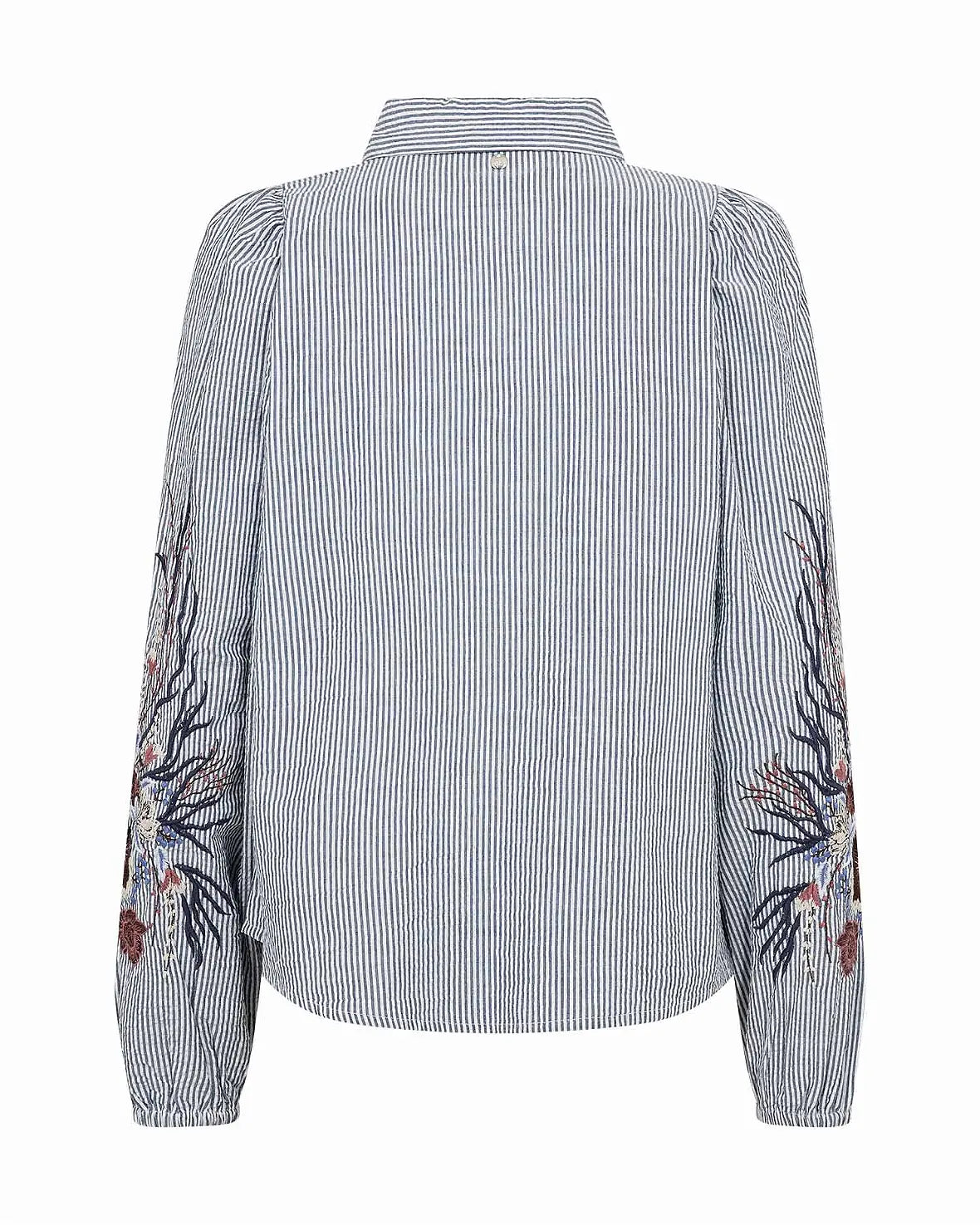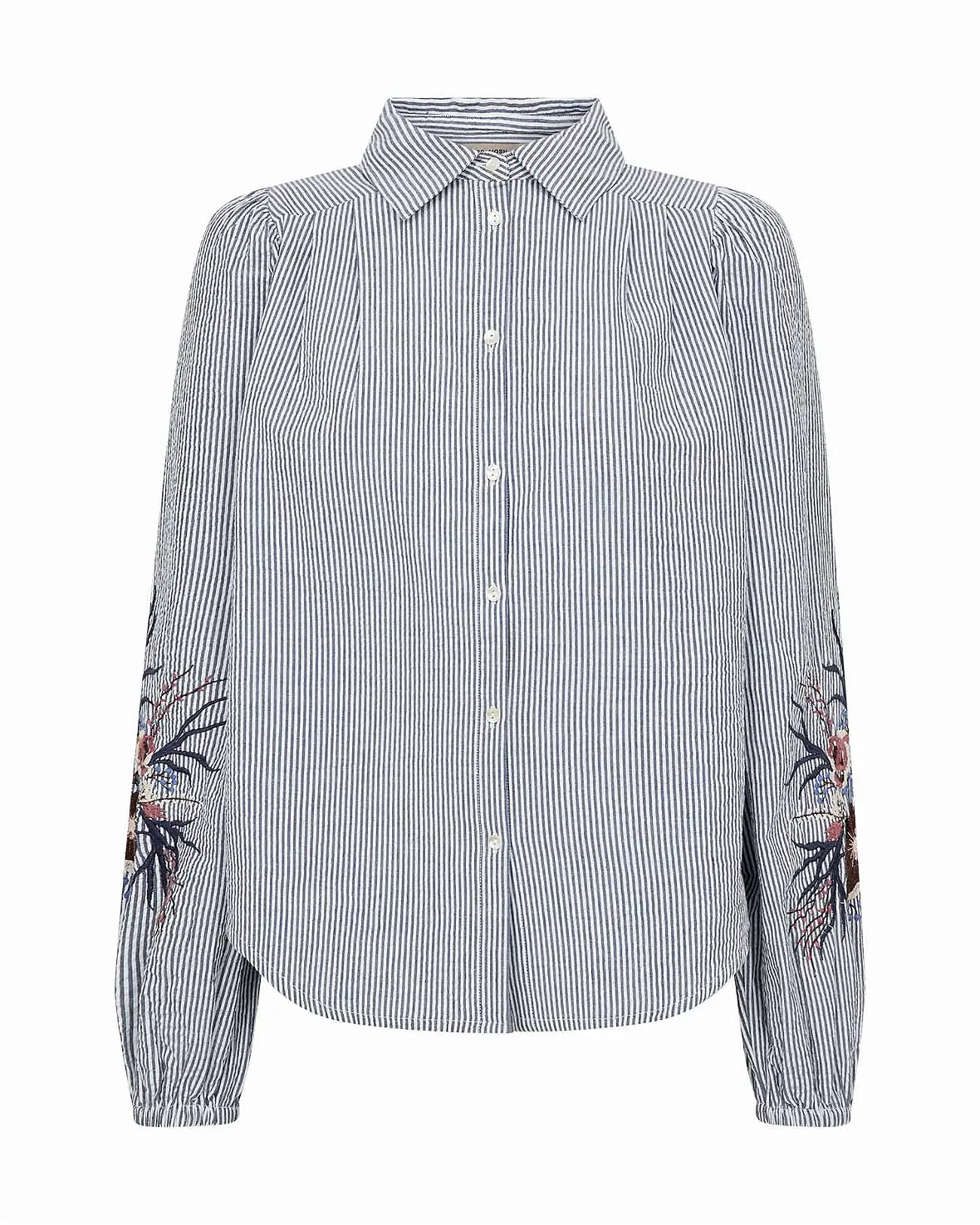 Lekler bomull skjorte fra Mos Mosh med tynne blå striper og broderier på armene.