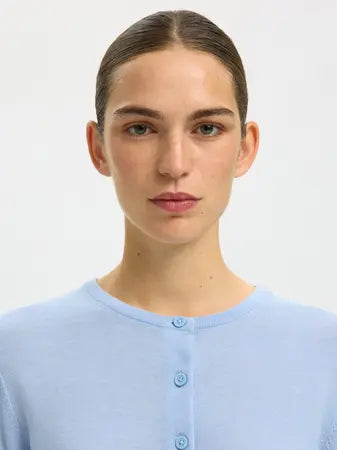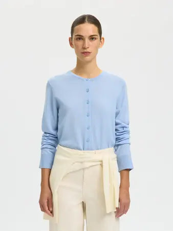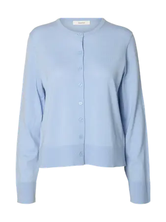 Thea LS Knit Merino Cardigan, Cashmere Blue