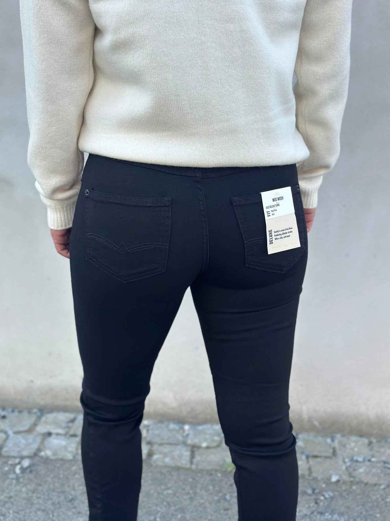 Vice fra Mos Mosh er en kjempefin jeans i mykt stoff som sitter stramt og behagelig på med høyt liv. Masse strech.