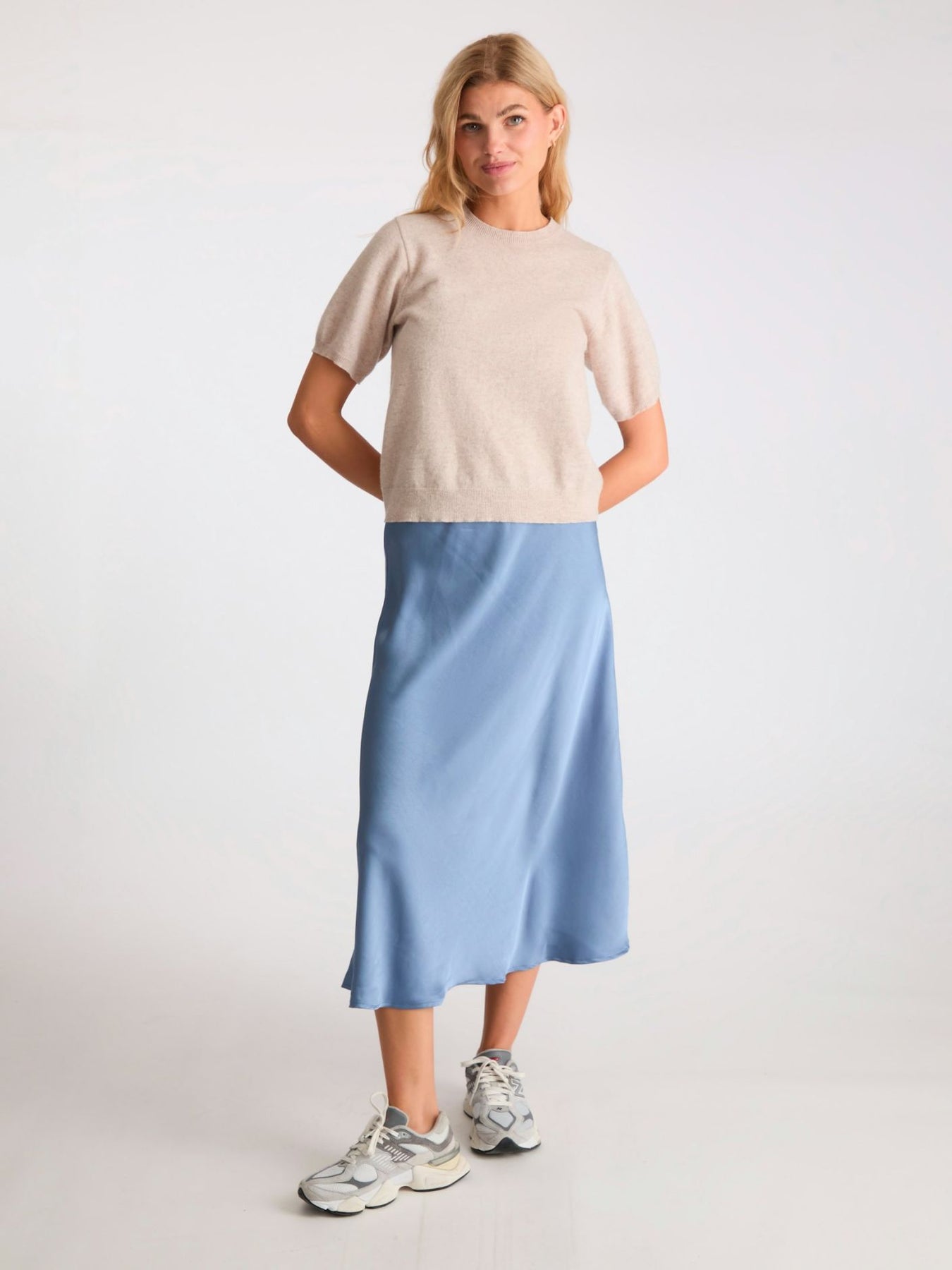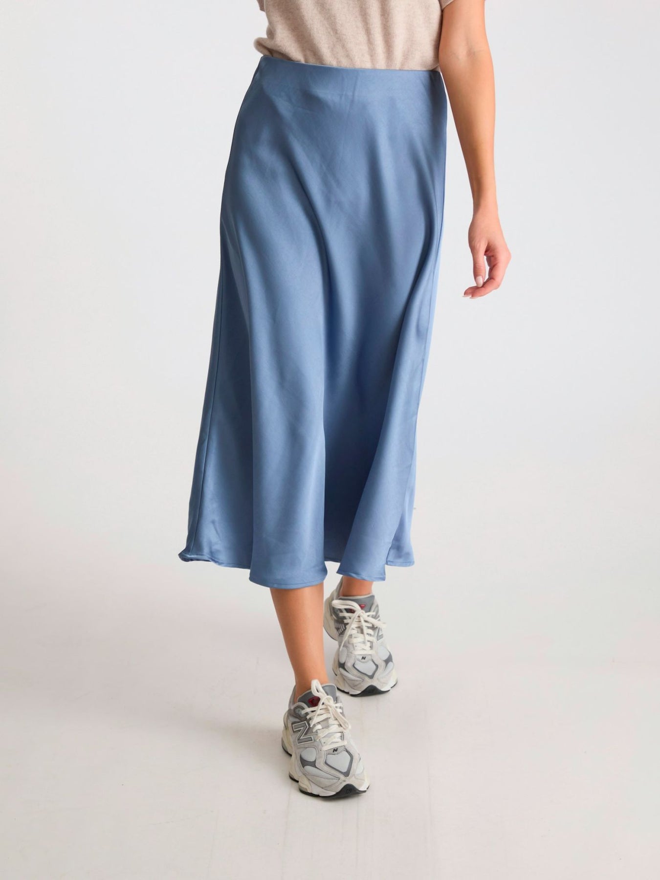 Bovary Skirt fra Neo Noir. Langt skjørt med strikk på innsiden av midjen. Skjørtet er skråstilt og har en veldig flatterende passform. Bovary Skirt er laget i nydelig glatt sateng, og det er like fint til hverdag som til fest. Style det gjerne med en deilig strikkegenser til hverdag, og en fin topp til fest. Materiale: 100% Polyester