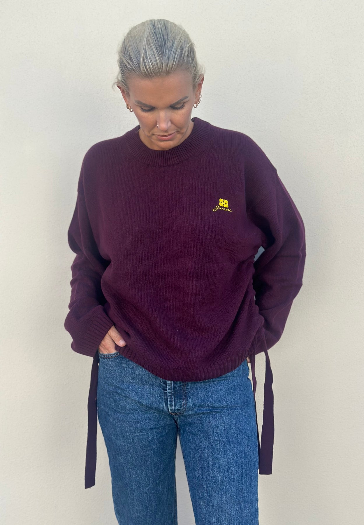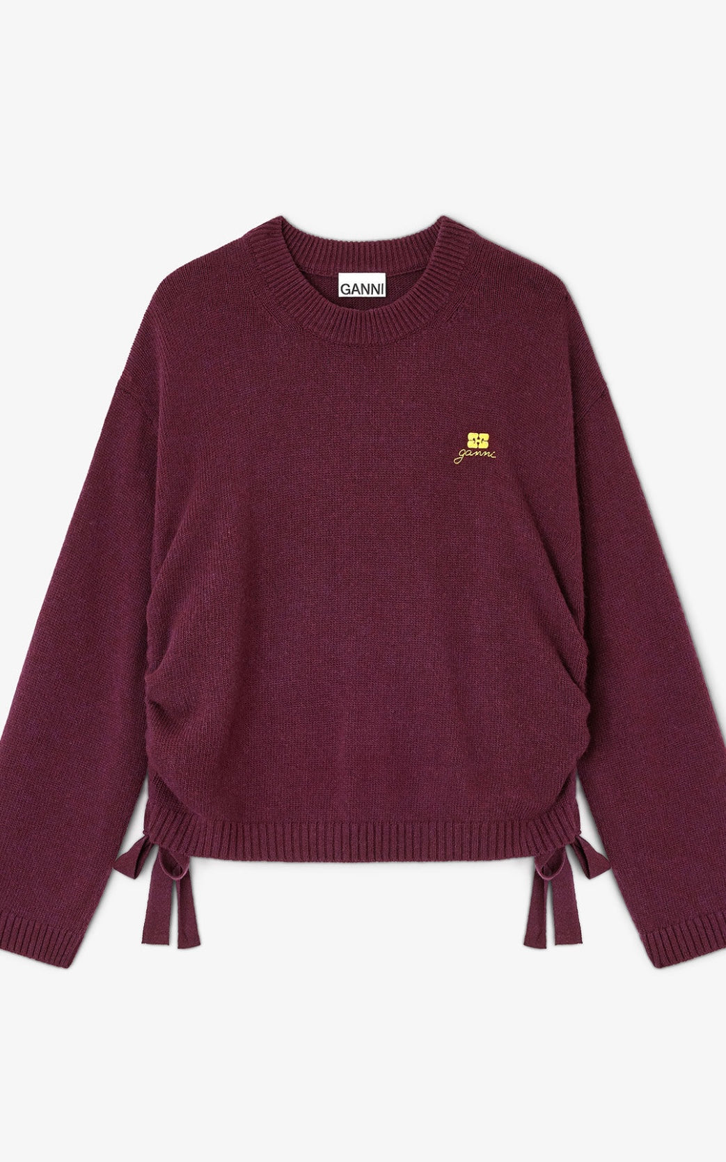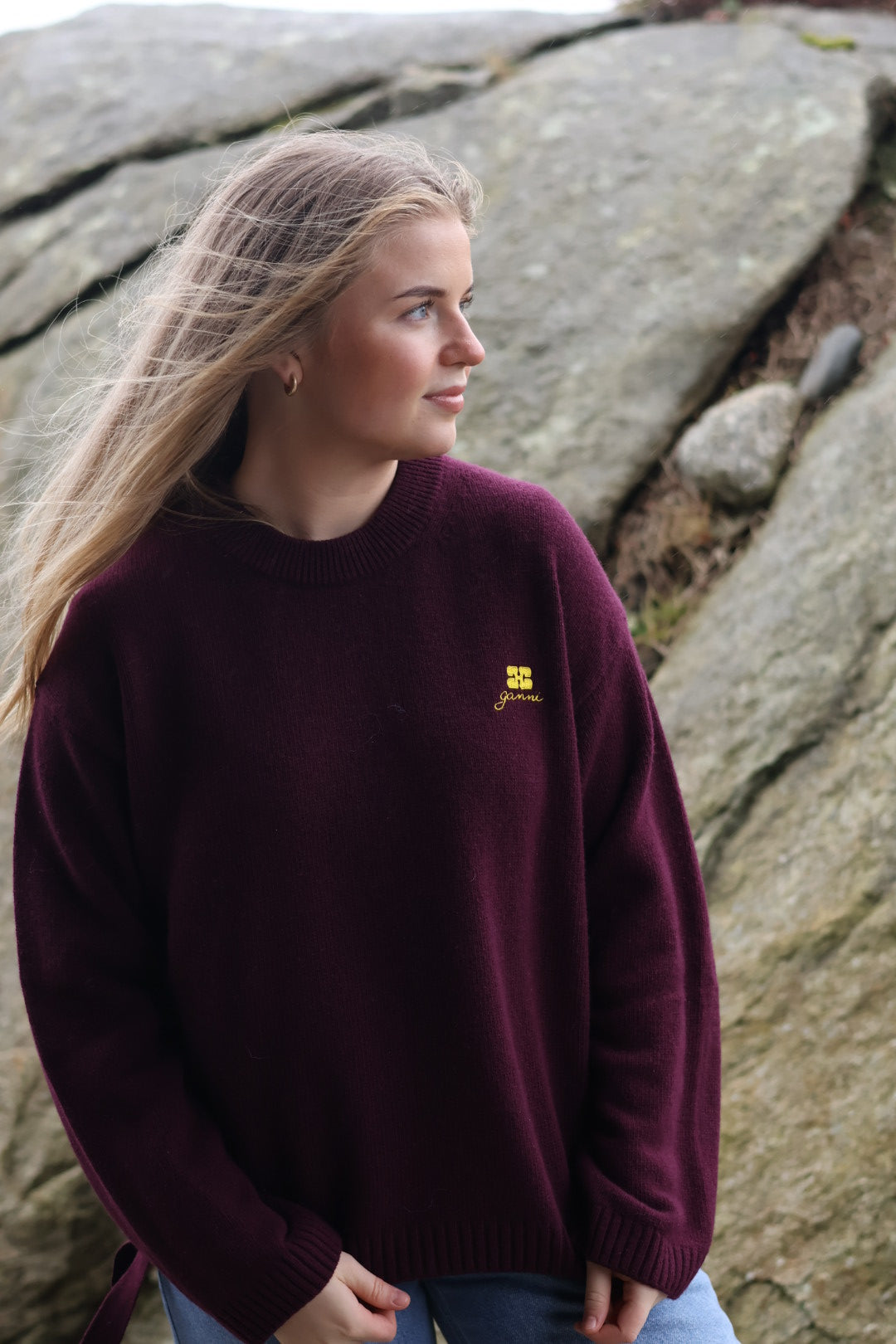 Deilig oversized ullgenser fra GANNI i nydelig farge. Rund hals og snøring i siden for en røff look. 60% ull, 40% viskose