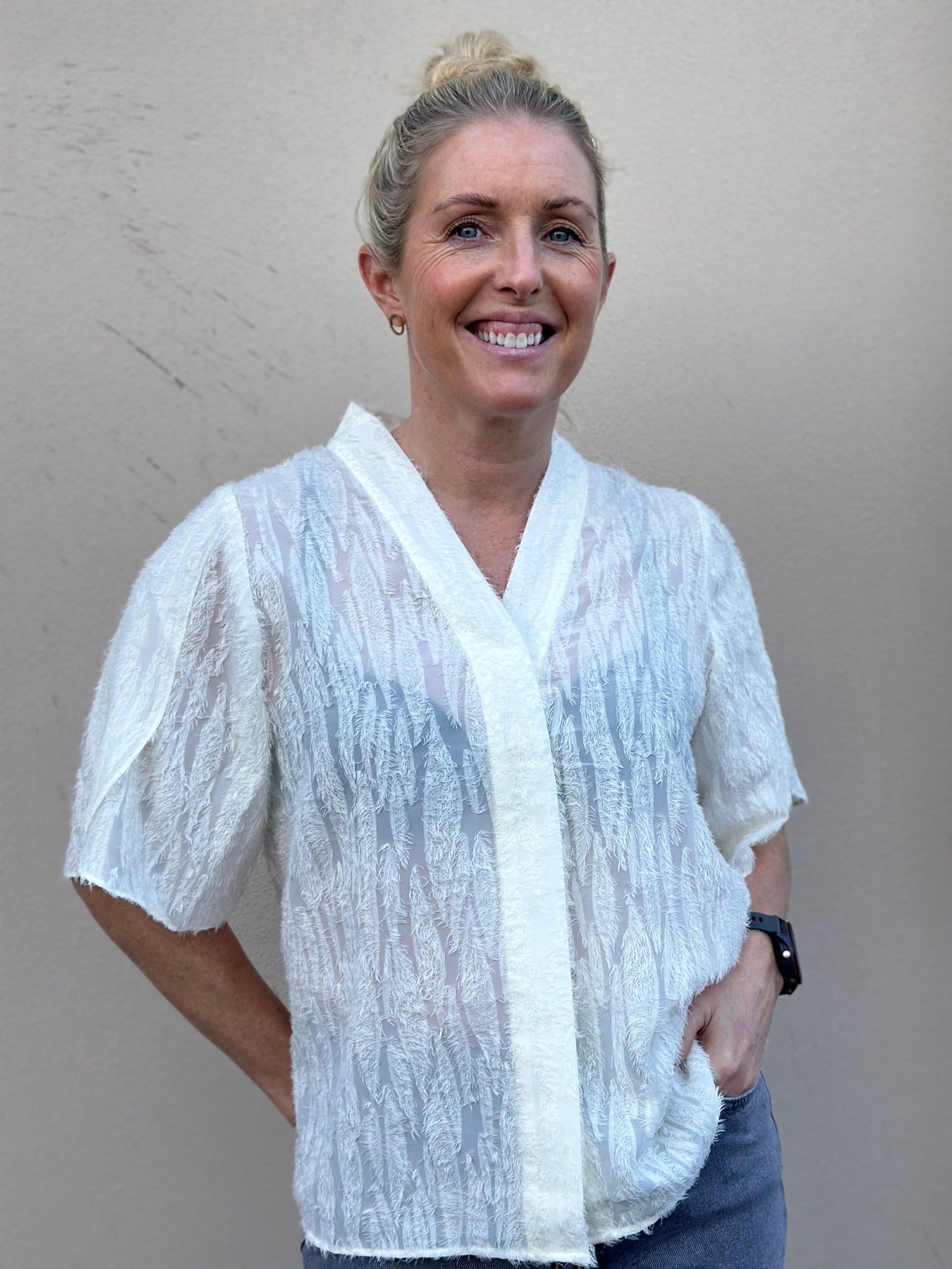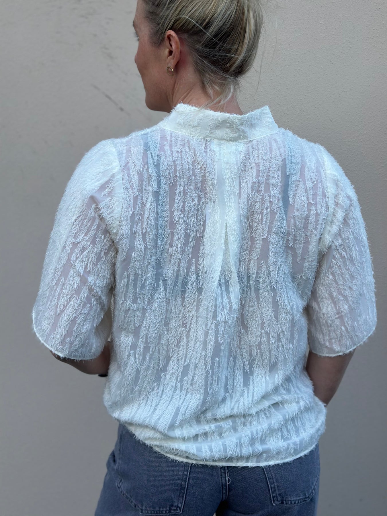 Stilig bluse med frynser .
