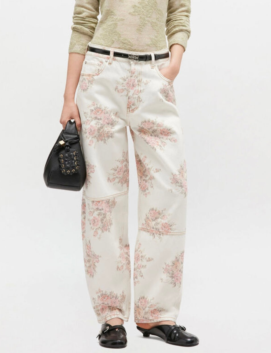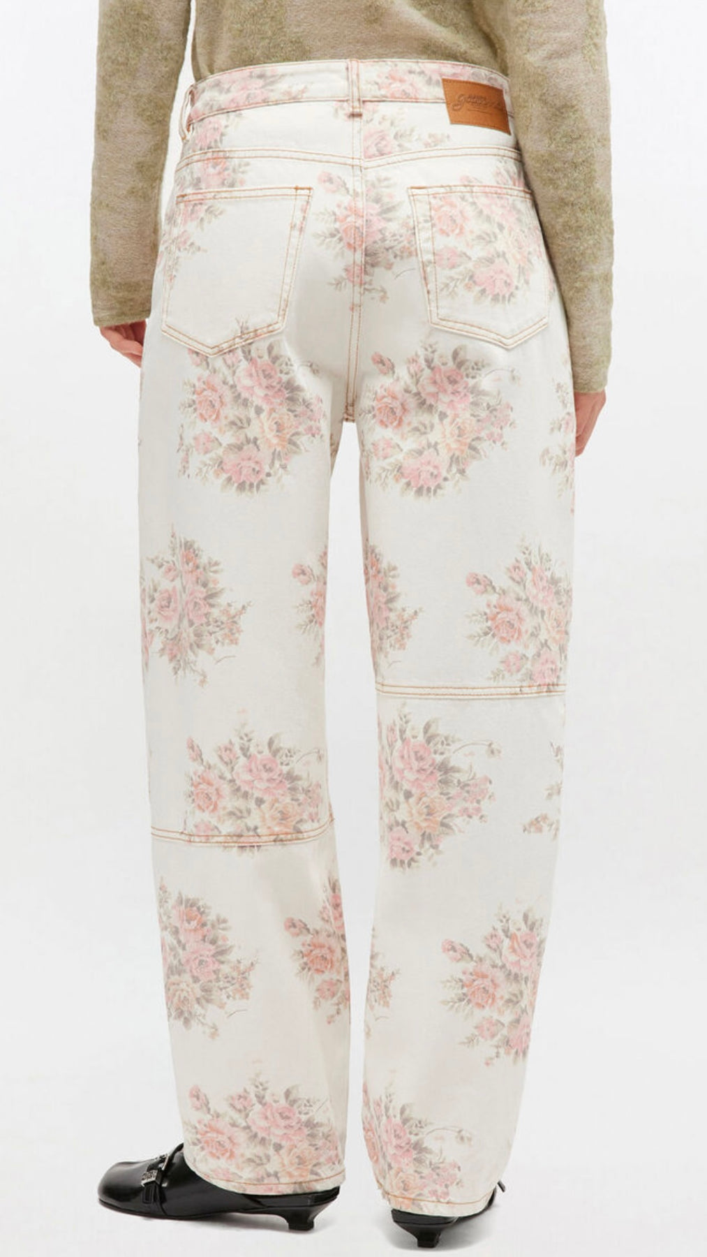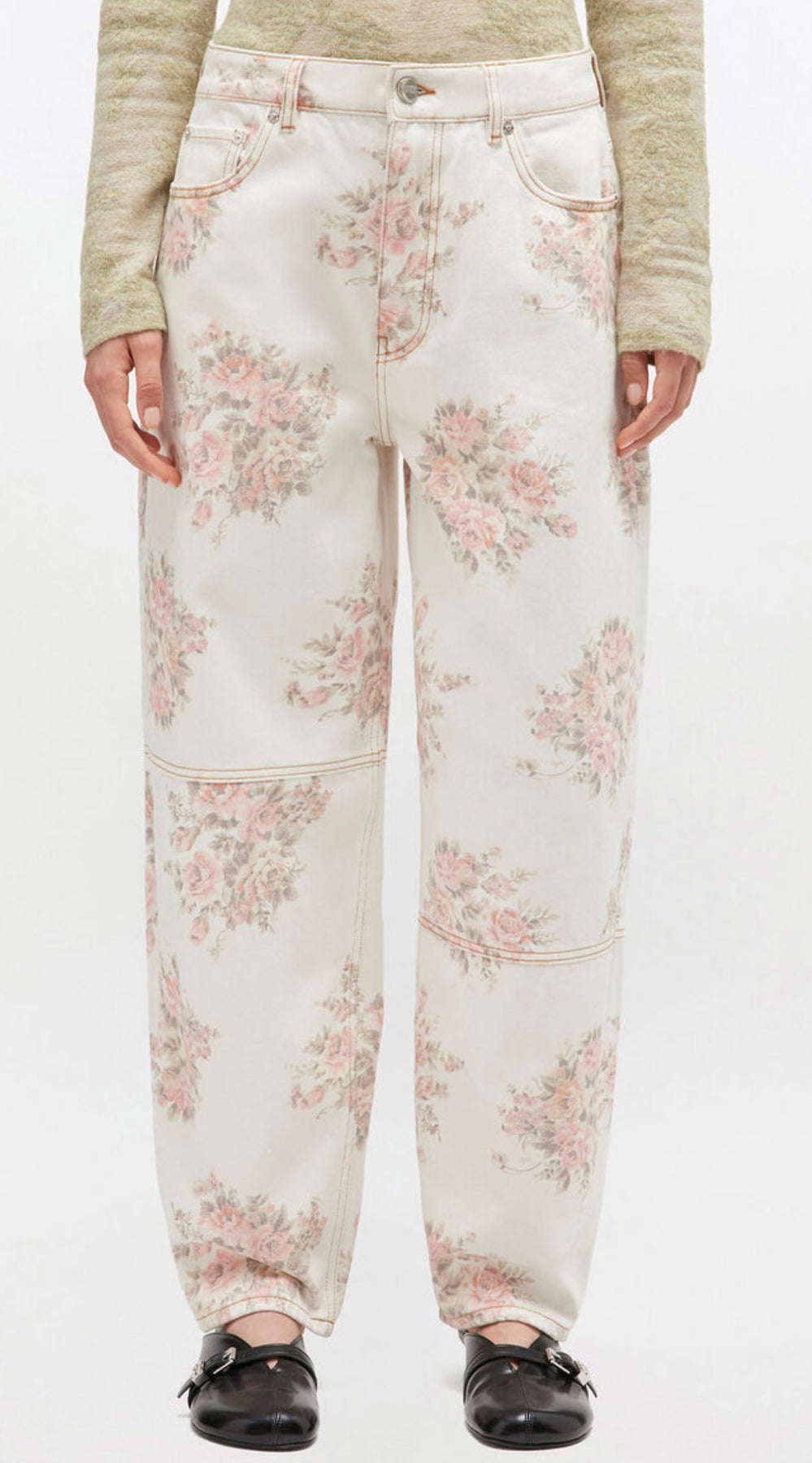 Denne jeansen med blomstertrykk har knapp- og glidelåslukking, fem lommer, beltehemper og et GANNI-logomerke på baklommen.