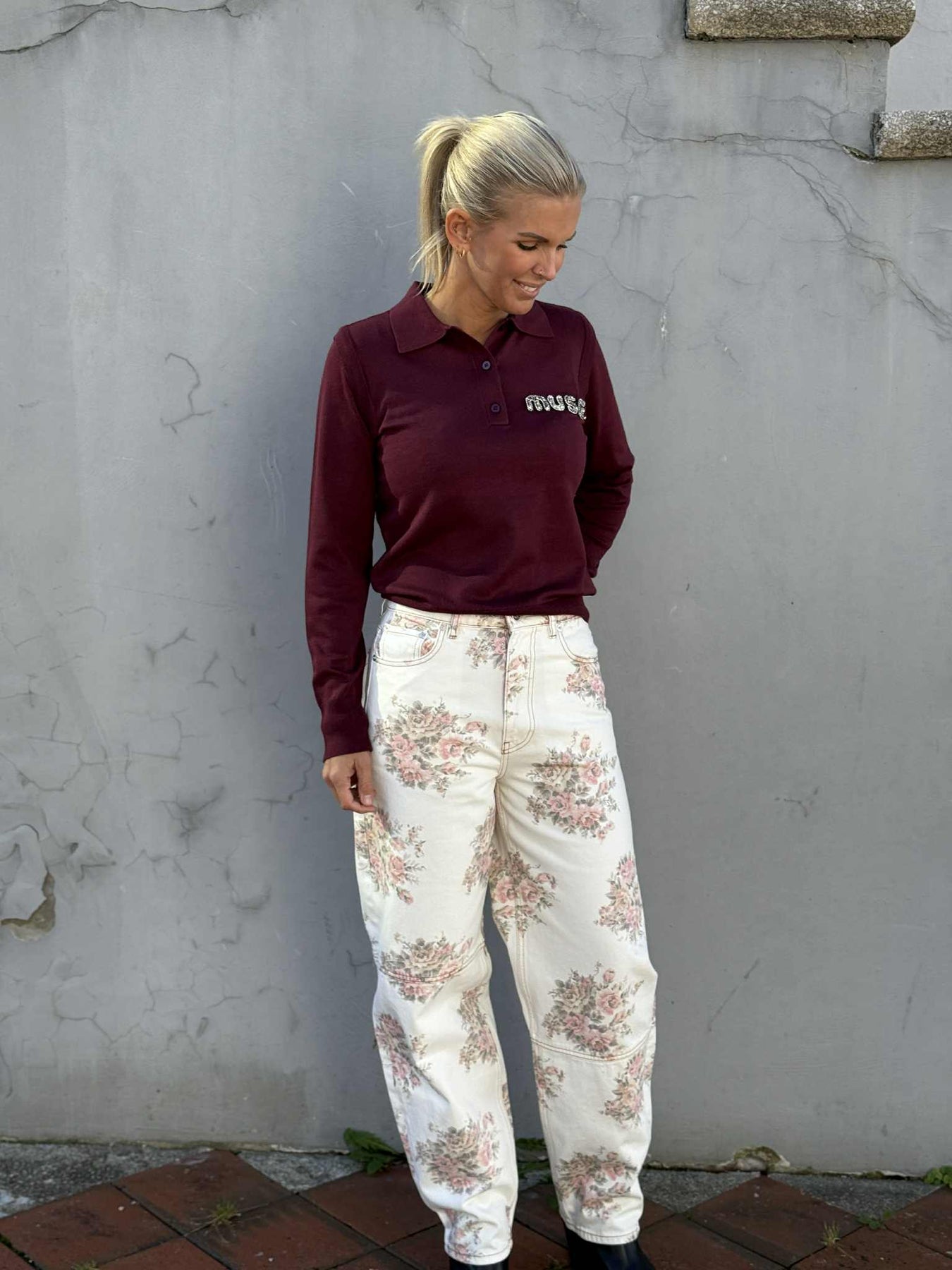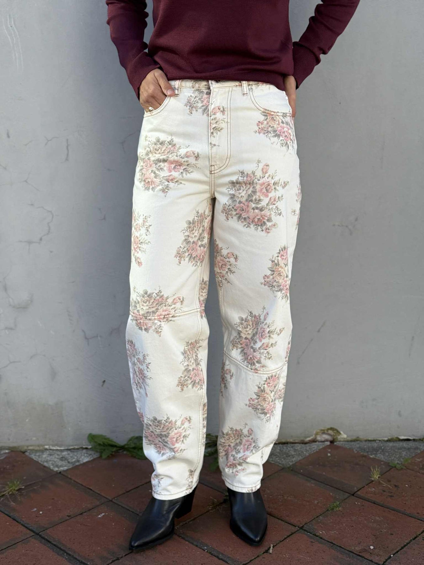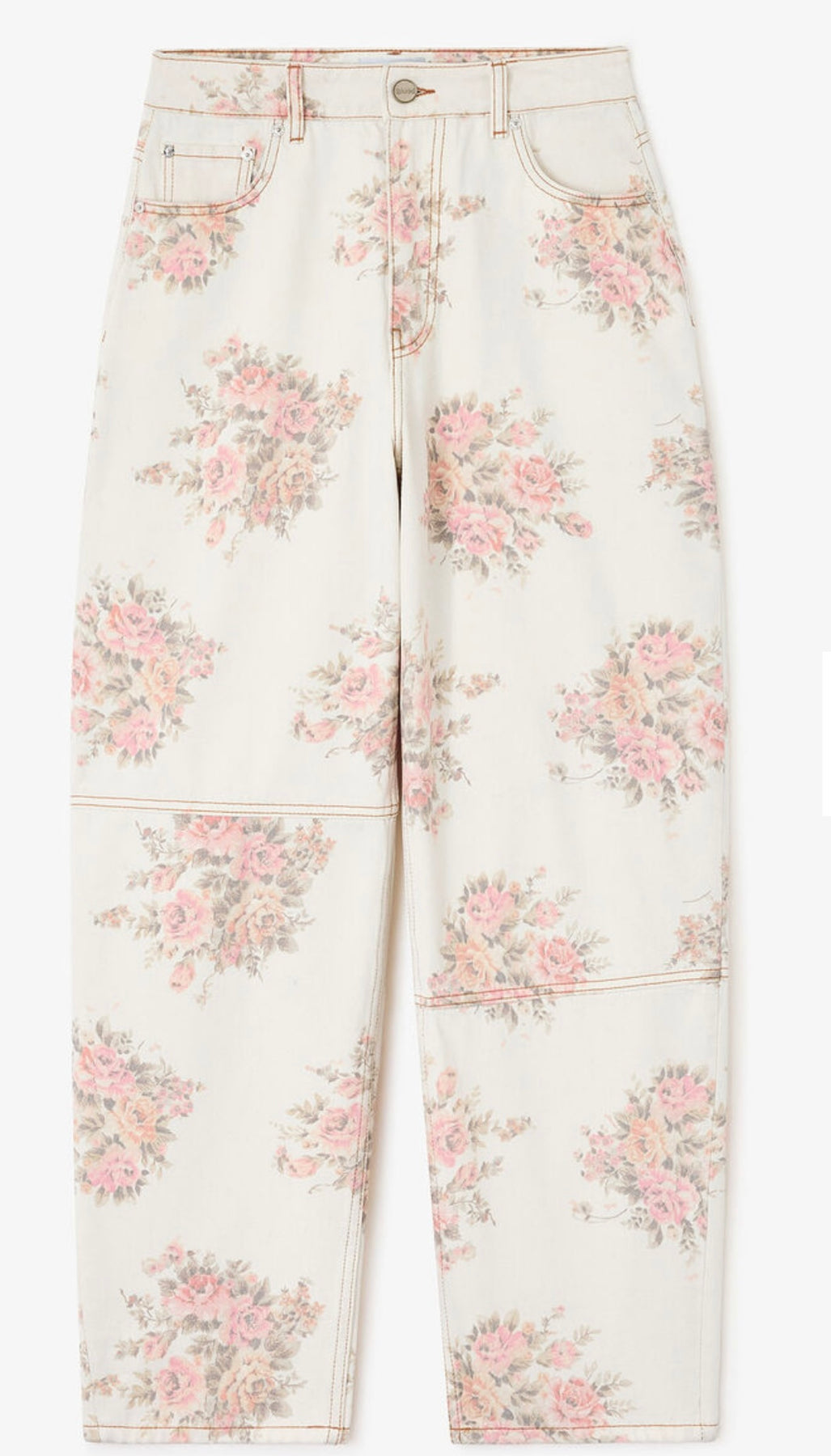 Denne jeansen med blomstertrykk har knapp- og glidelåslukking, fem lommer, beltehemper og et GANNI-logomerke på baklommen.
