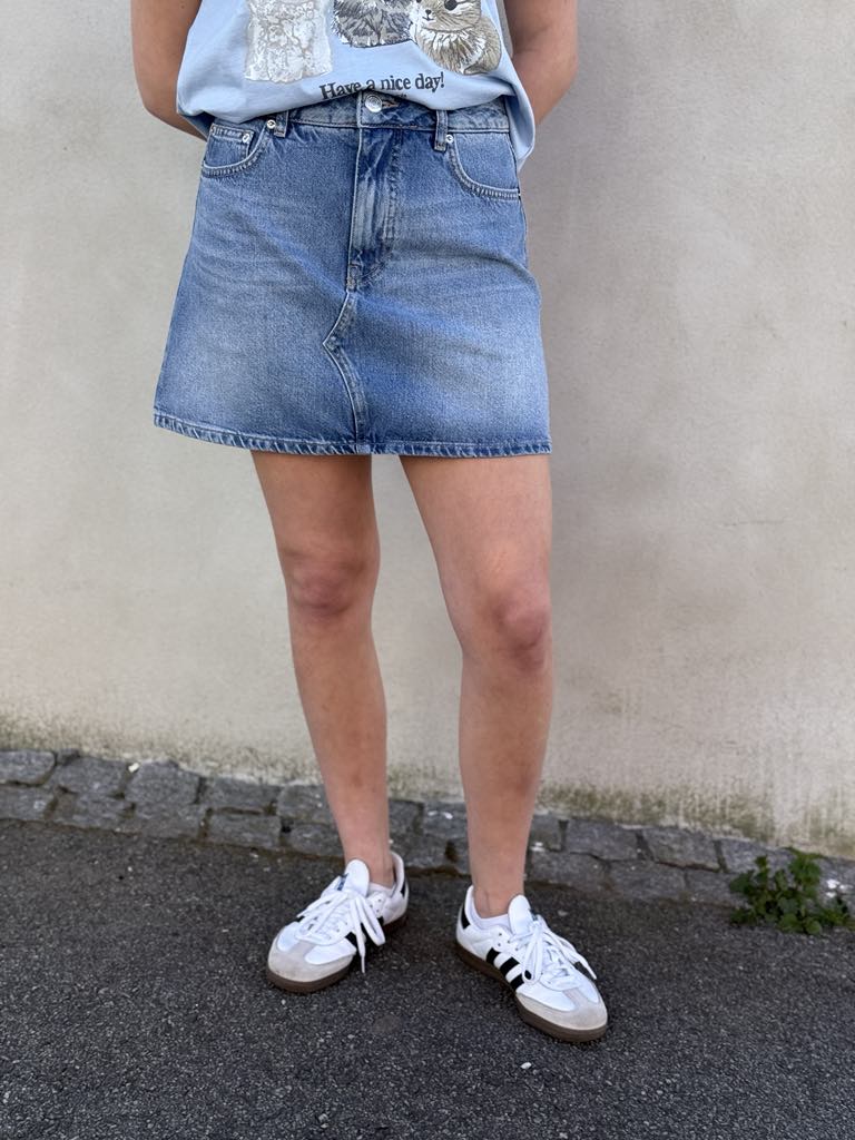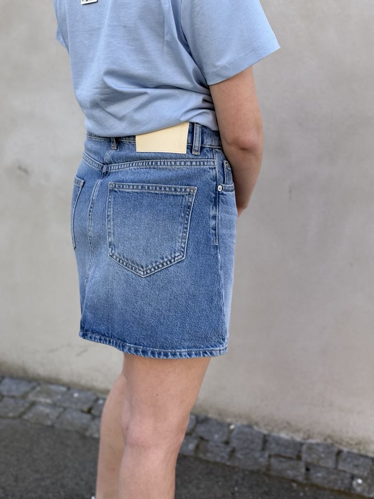 Dongeriskjørt fra Holzweiler. Kult å style sammen med jeansjakken i samme farge.