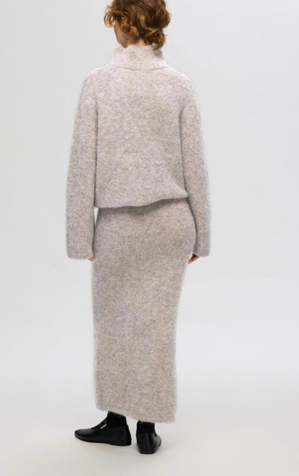 Hva kan vel være bedre enn et mykt, strikket sett på denne tiden av året? Vi introduserer vår nyeste strikkkefavoritt – et strikket midiskjørt laget av luksuriøs myk alpakkaull, fullført med en komfortabel og elastisk linning. Bruk den med vår matchende strikk, et par flate sko med spenne og en elegant skulderveske i skinn.