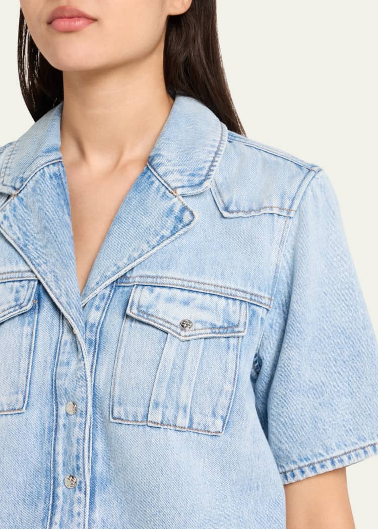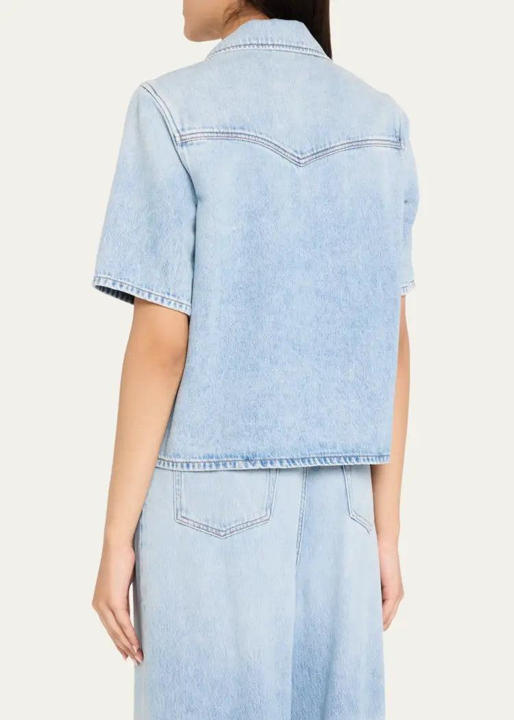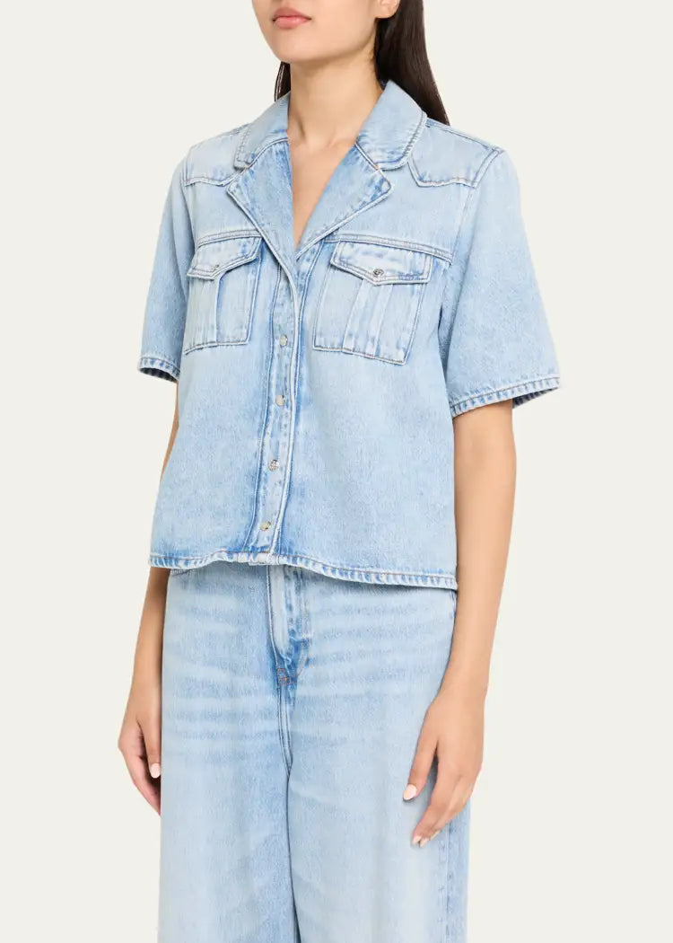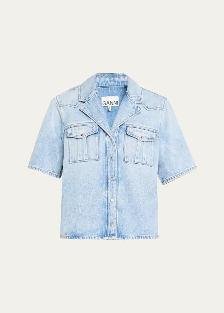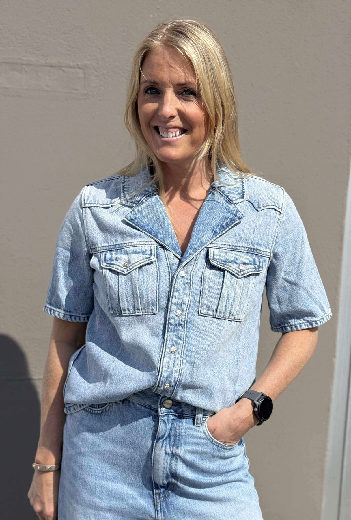 Skjortejakke med t-skjorteermer i myk denim. passer perfekt med både skjørt og bukse i samme serien.