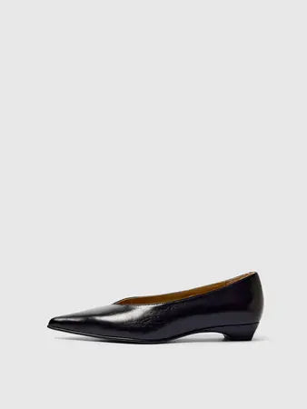 Isla Leather Pump fra Selected Femme. Elegante sko fra Selected Femme i skinn. Isla Leather Pump har spiss tå og en liten, komfortabel hel - perfekt til jobb eller dager man skal gå mye. Skoene har en glatt overflate og et stilrent design. Materiale: 100% skinn