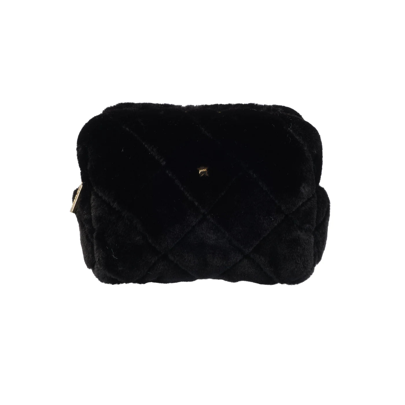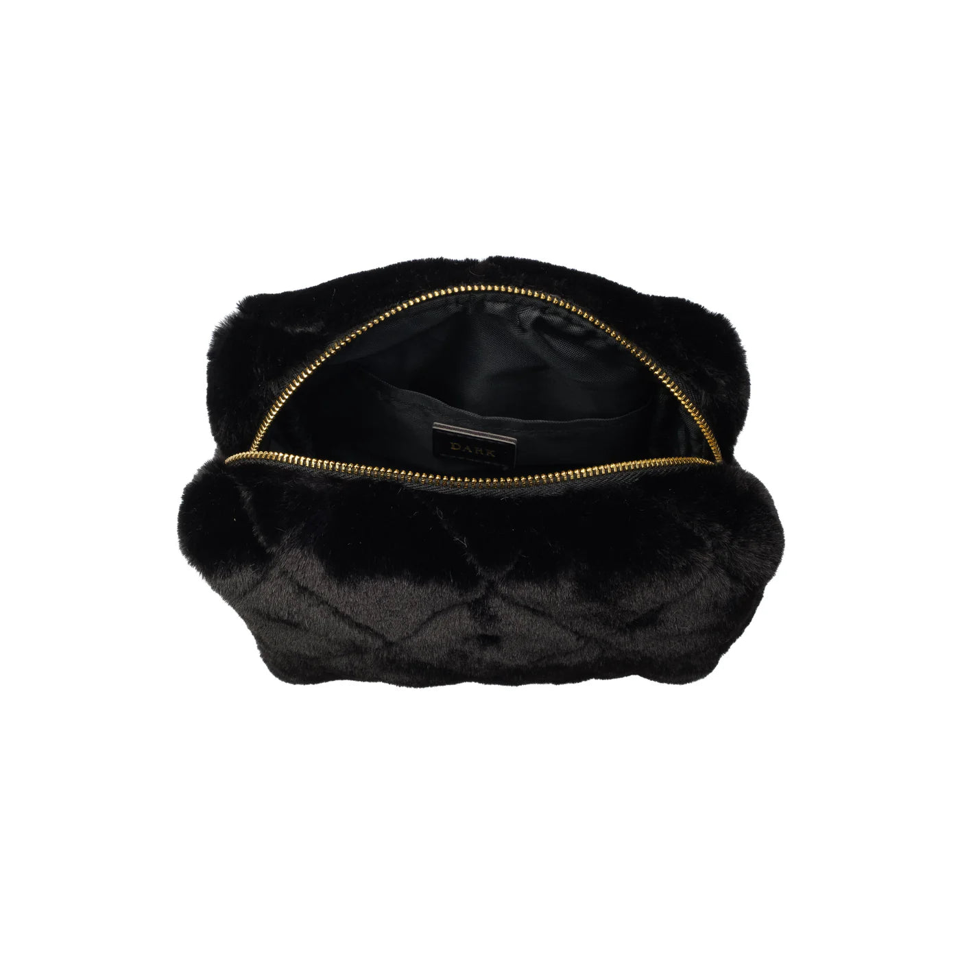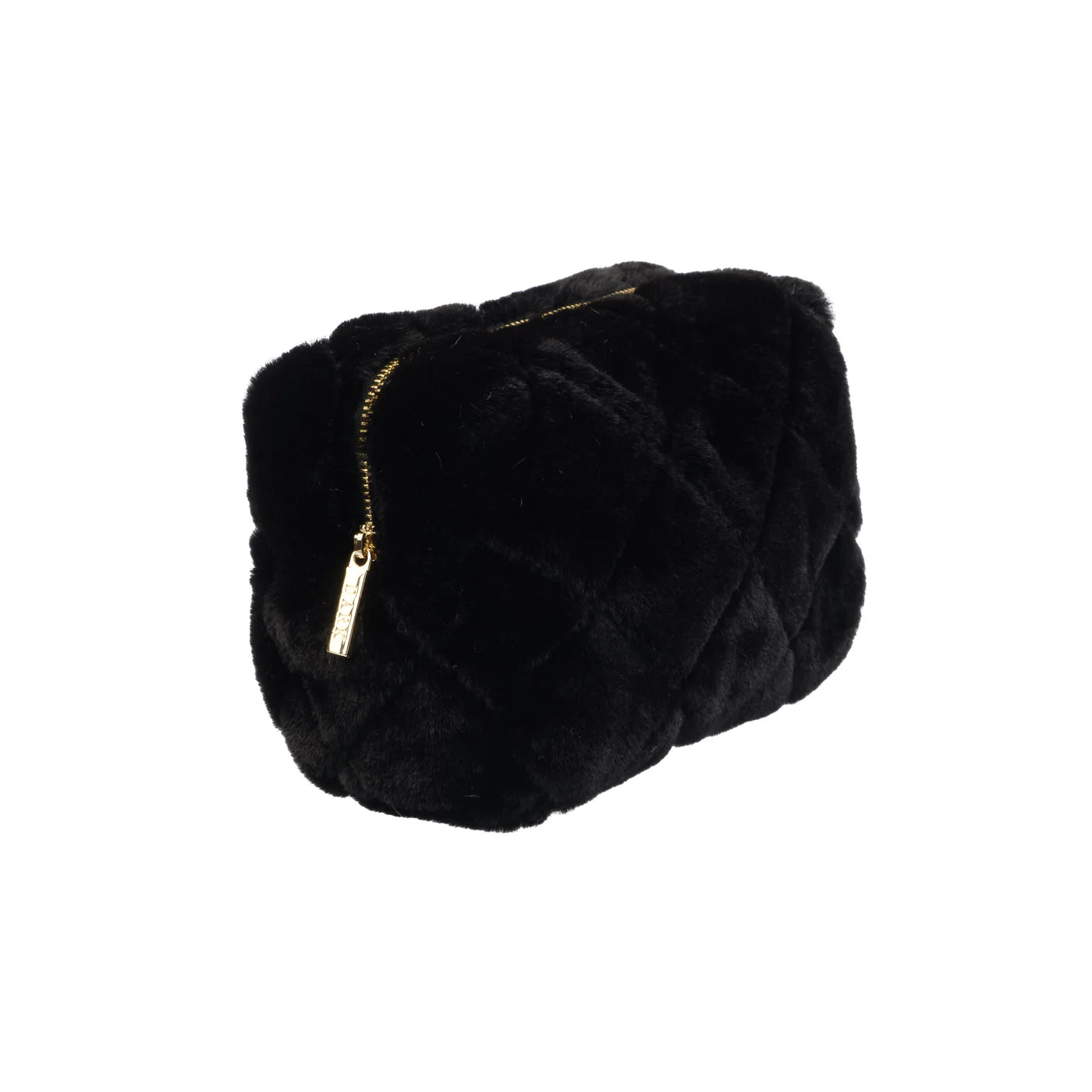 Faux Fur Quilted Make-Up Pouch Small, Black