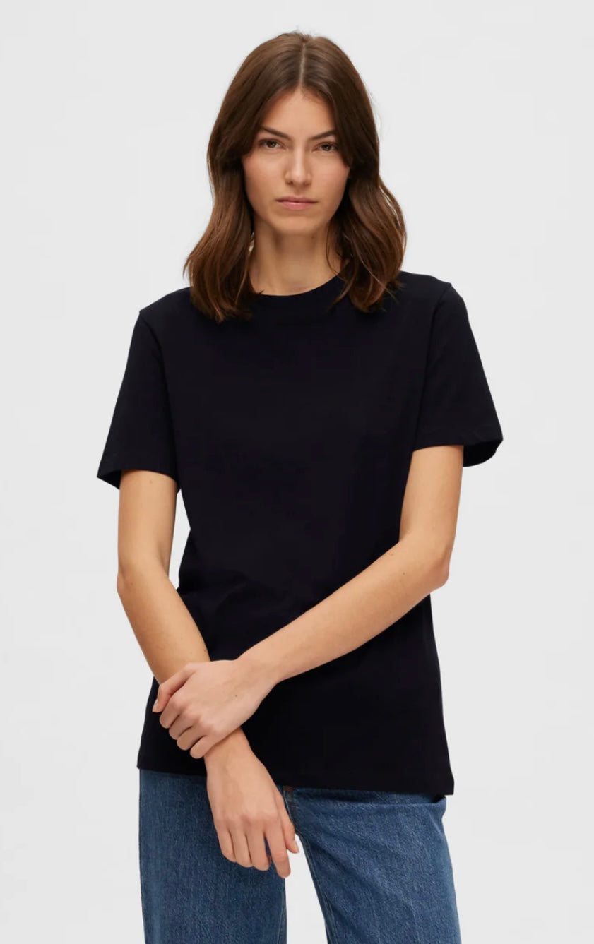 Bomullsbasic fra Selected Femme med rund hals.