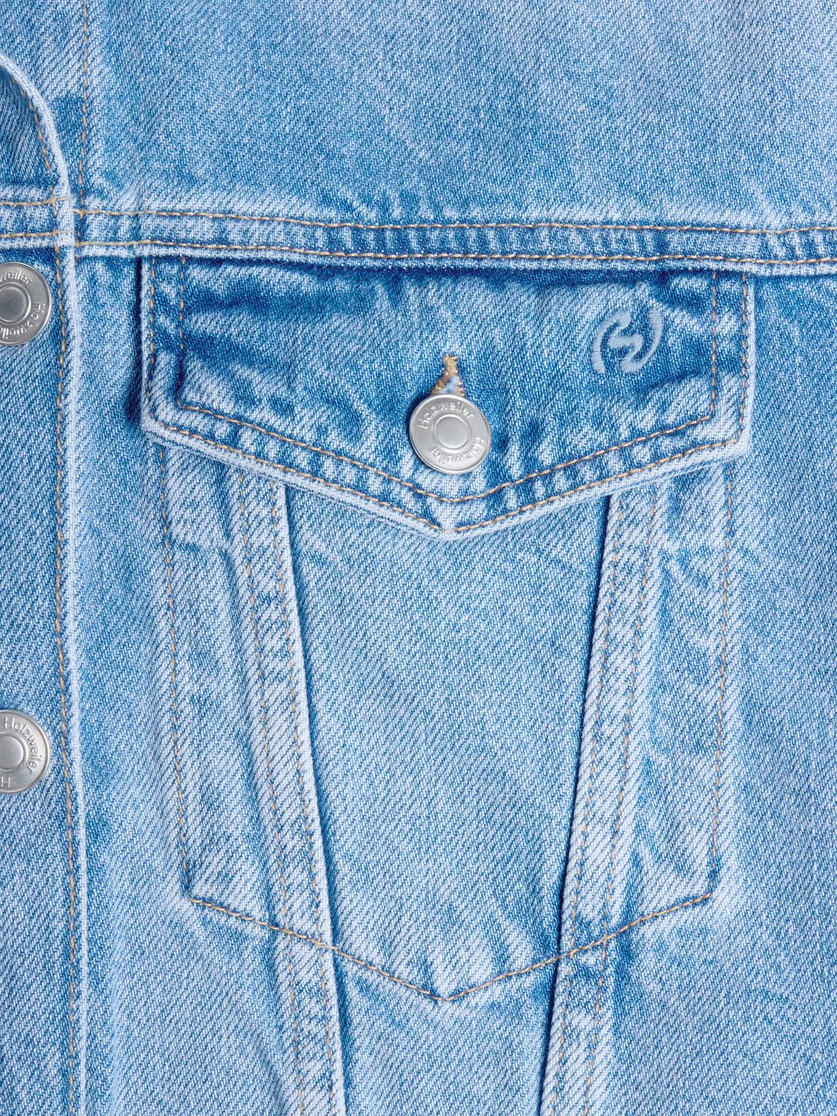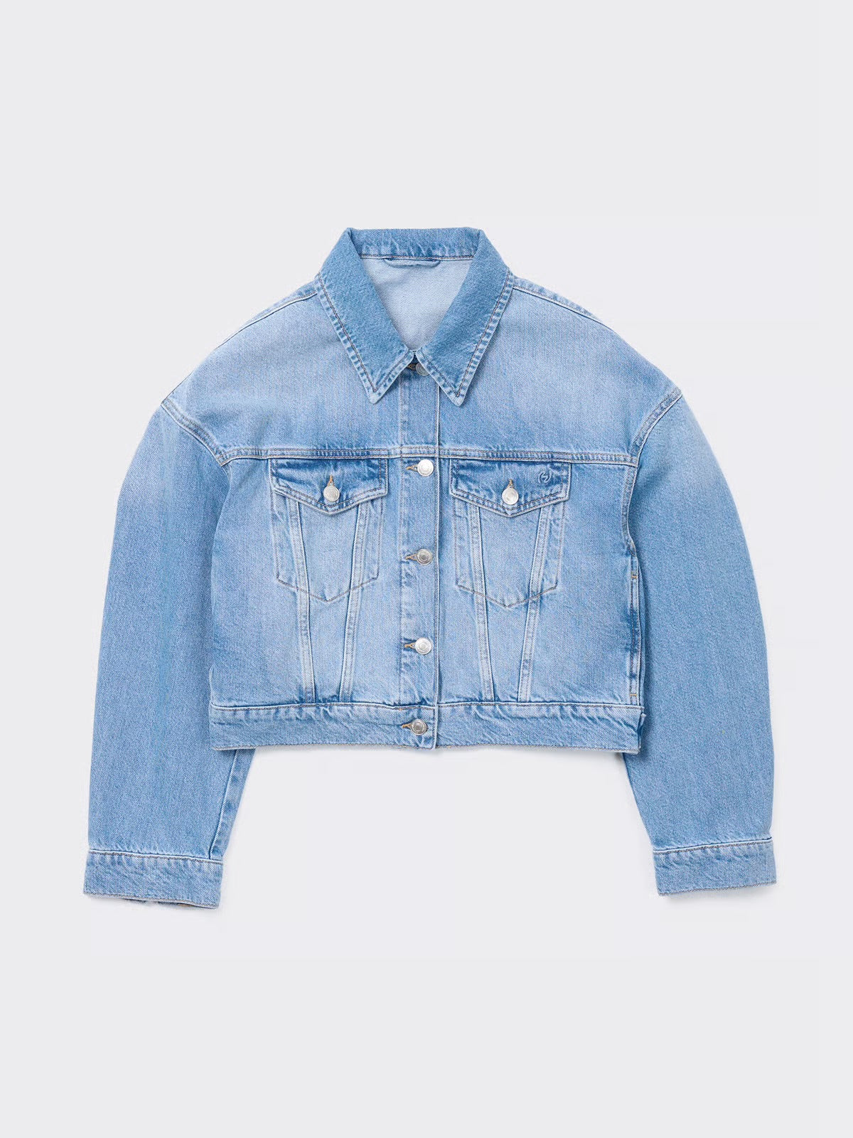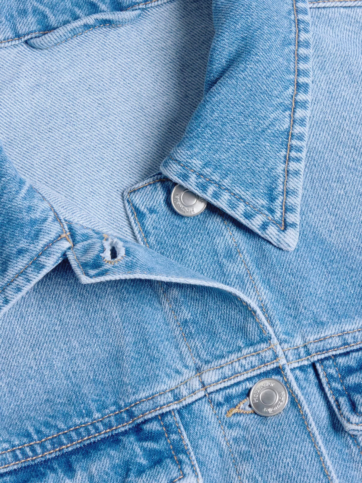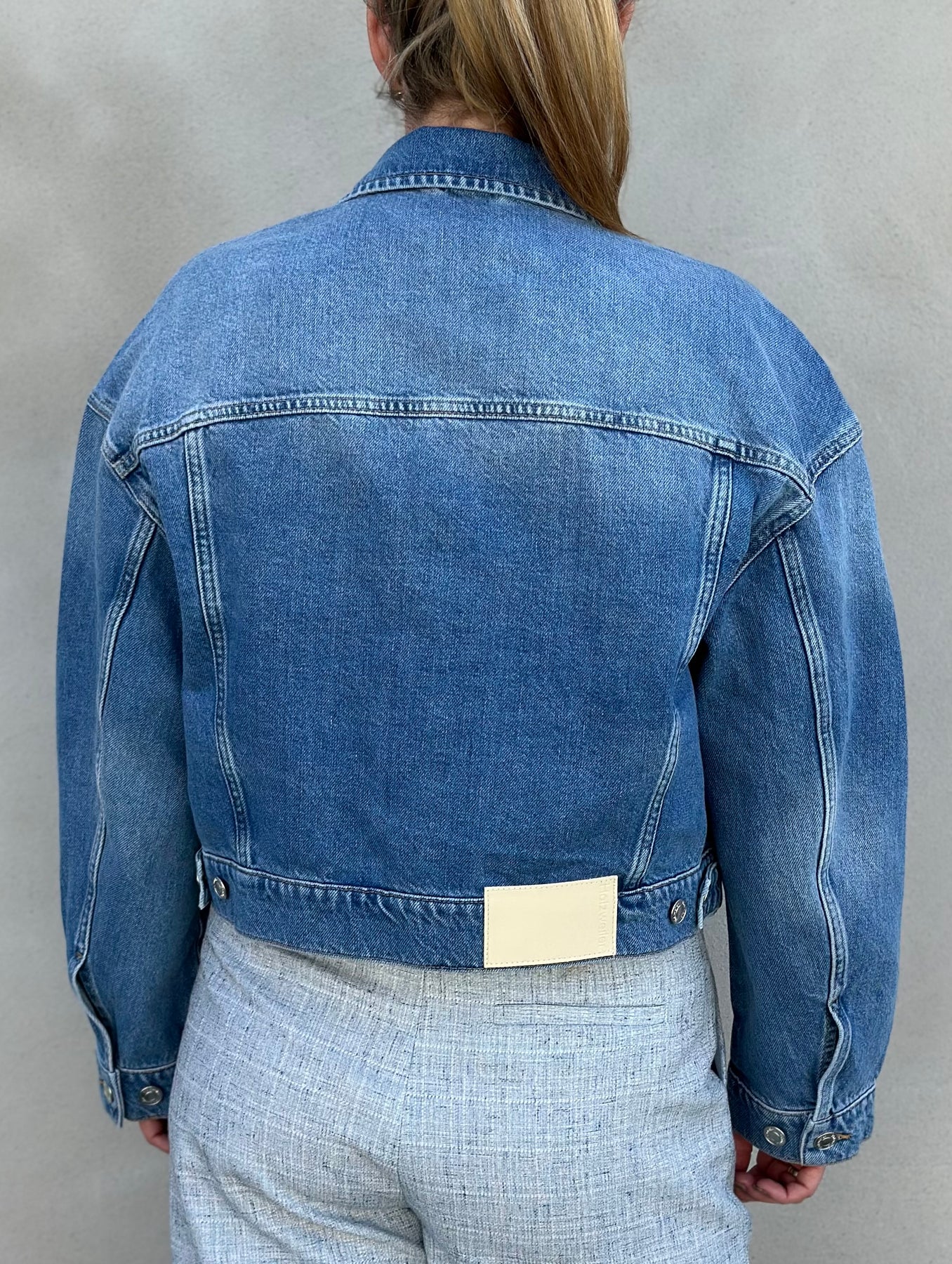 Den perfekte dongerijakken til å ha over kjolen! kortere jakke i klassisk blå farge. Her kan du også matche med skjørt og bukse i samme farge-