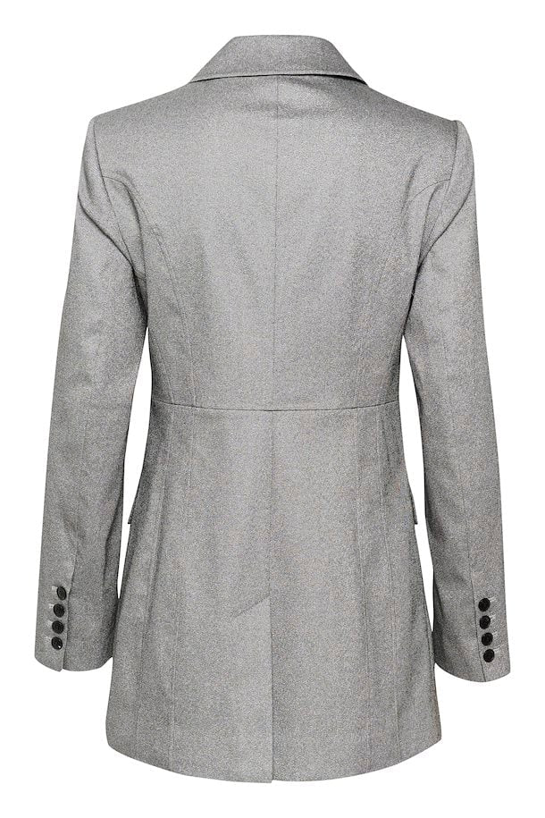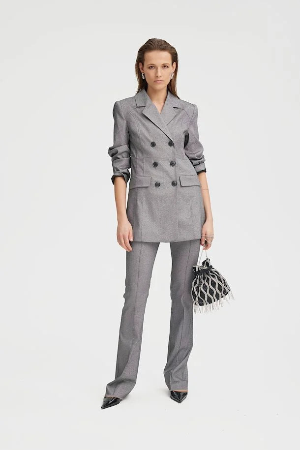 Lang dobbelspent blazer fra Gestuz med nydelig snitt. Like lekker igjen som åpen. Perfekt over kjoler men rå til buksen som hører til.
